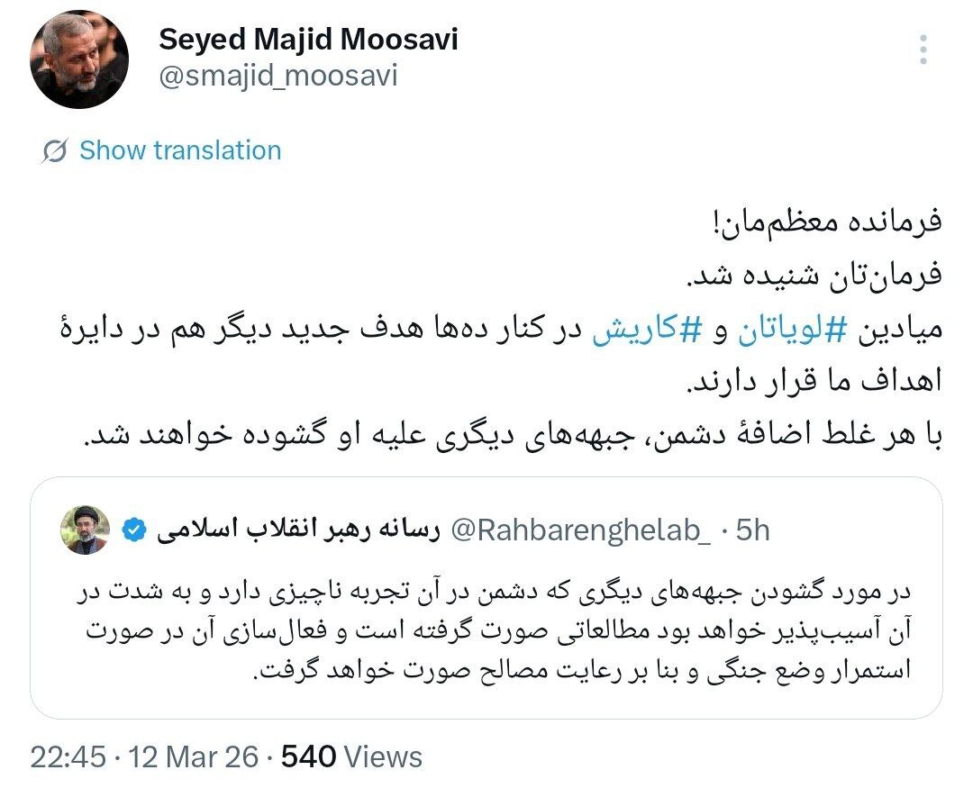 خلاصهای از نخستین پیام آیت الله سید مجتبی خامنهای، رهبر معظم انقلاب اسلامی ۱۴۰۴/۱۲/۲۱