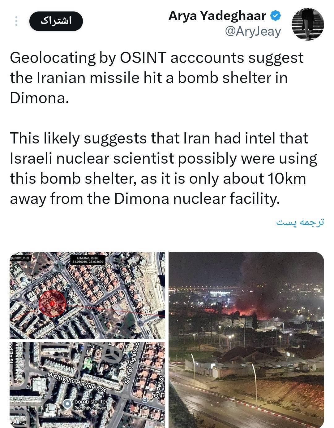 ساختمانی که دیشب ایران در عراد مورد قرار داده گویا پناهگاه دانشمندان هستهای دیمونا بوده است.