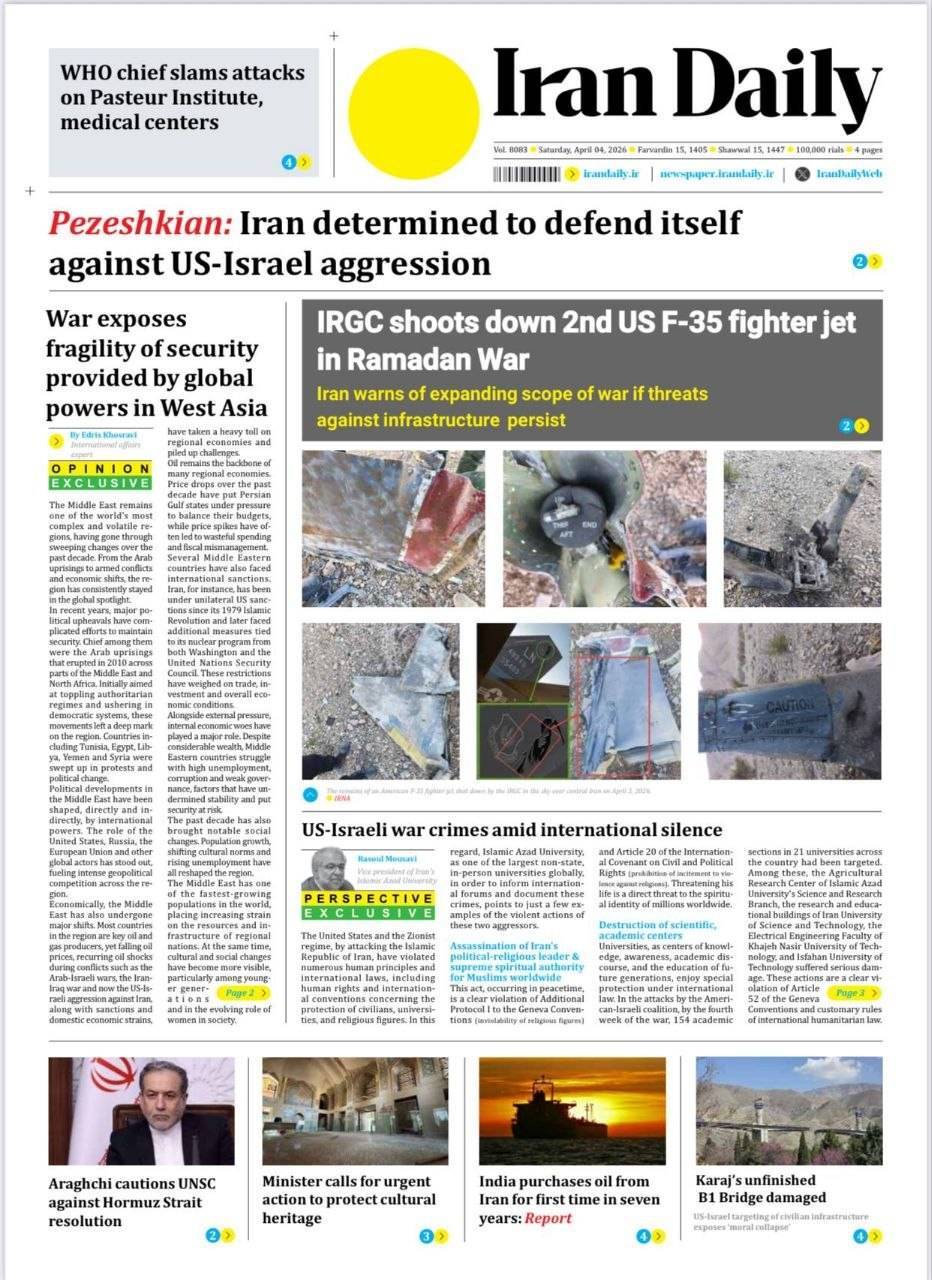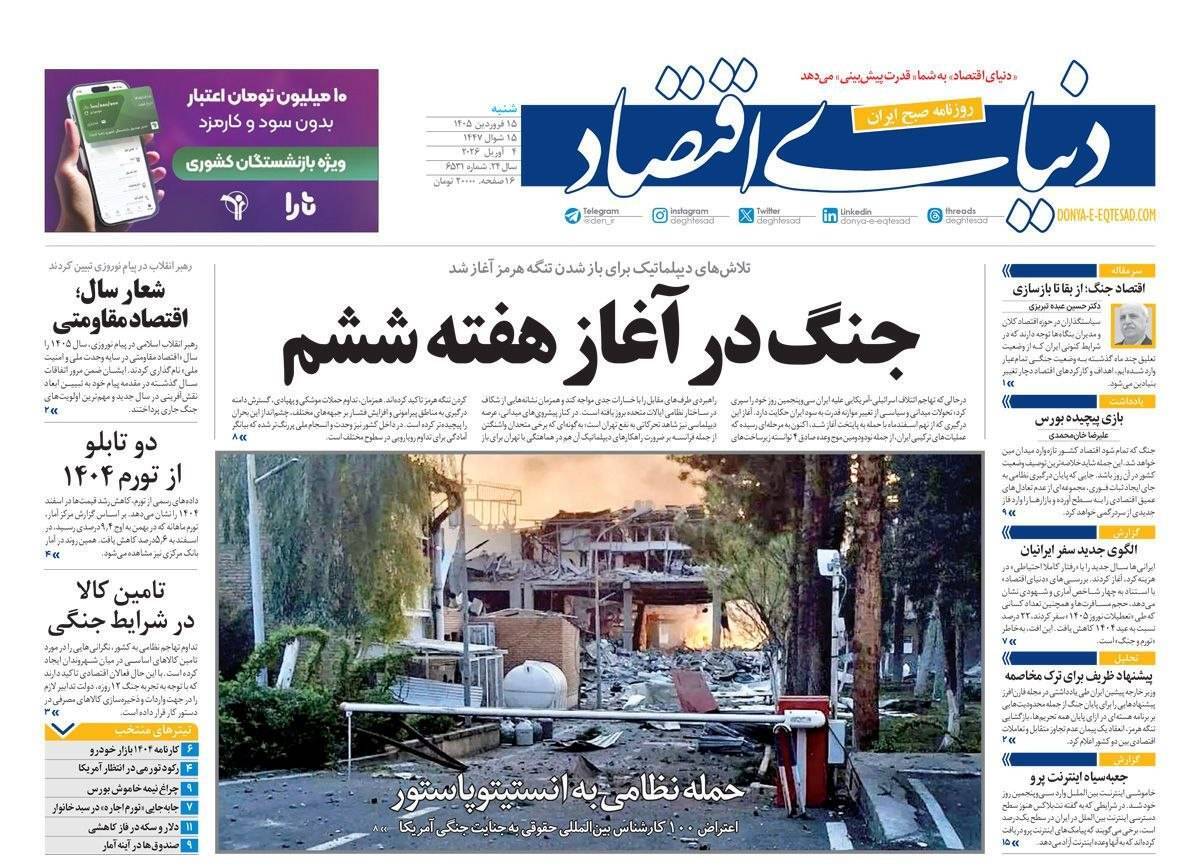 صفحه اول روزنامه های شنبه پانزدهم فروردین ۱۴۰۵