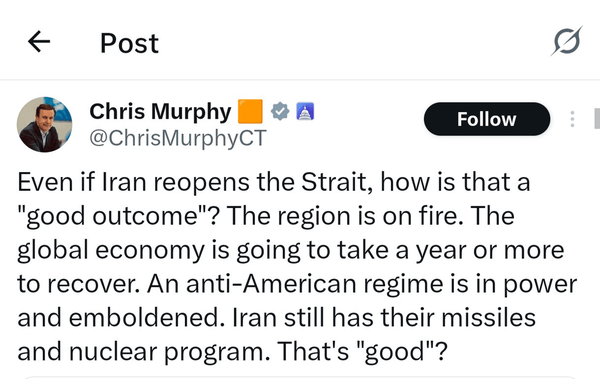 به گزارش تابناک؛ مورفی، سناتور آمریکایی در پیامی نوشته است: منطقه دارد در آتش می‌سوزد. اقتصاد جهانی به یک سال یا بیشتر زمان نیاز دارد تا بهبود یابد. یک نظام ضدآمریکایی در قدرت است و جسورتر هم شده است. ایران هنوز موشک‌ها و برنامه هسته‌ای‌اش را دارد. این خوب است؟