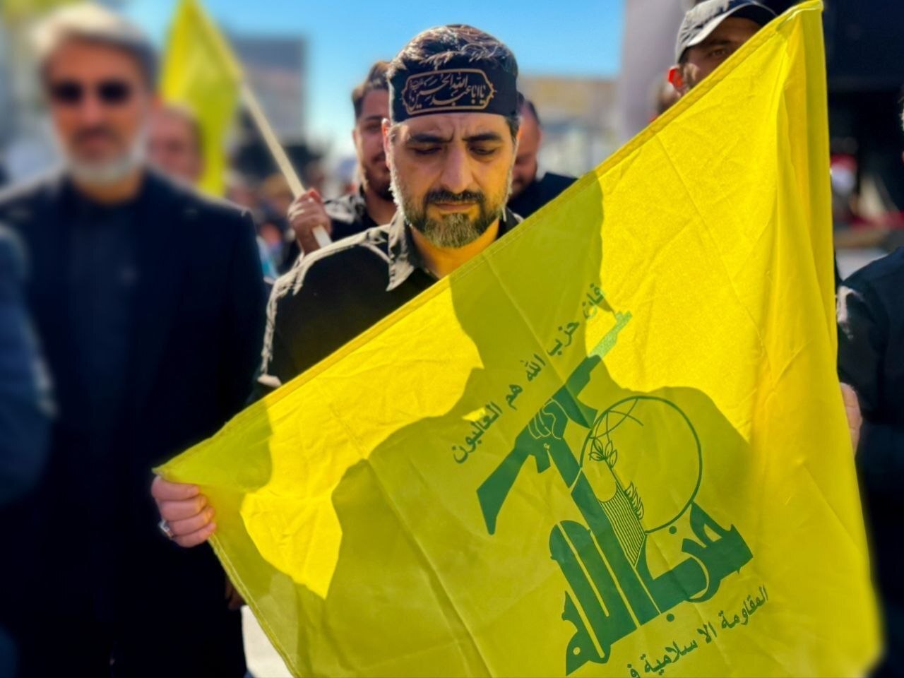 تصویری از سیدمجید بنیفاطمه با پرچم حزبالله در مراسم عزاداری امروز چهلم رهبر انقلاب