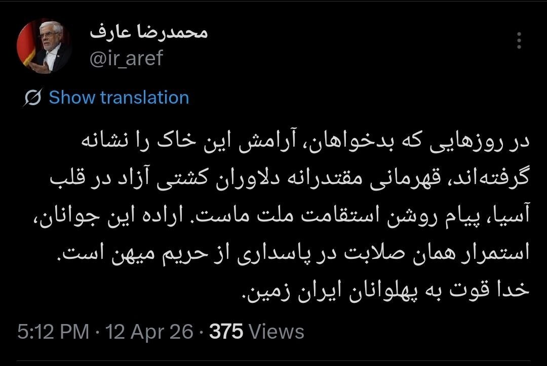 به گزارش تابناک، محمدرضا عارف معاون‌اول رئیس‌جمهور در صفحه شخصی خود نوشت: در روزهایی که بدخواهان، آرامش این خاک را نشانه گرفته‌اند، قهرمانی مقتدرانه دلاوران کشتی آزاد در قلب آسیا، پیام روشن استقامت ملت ماست.
