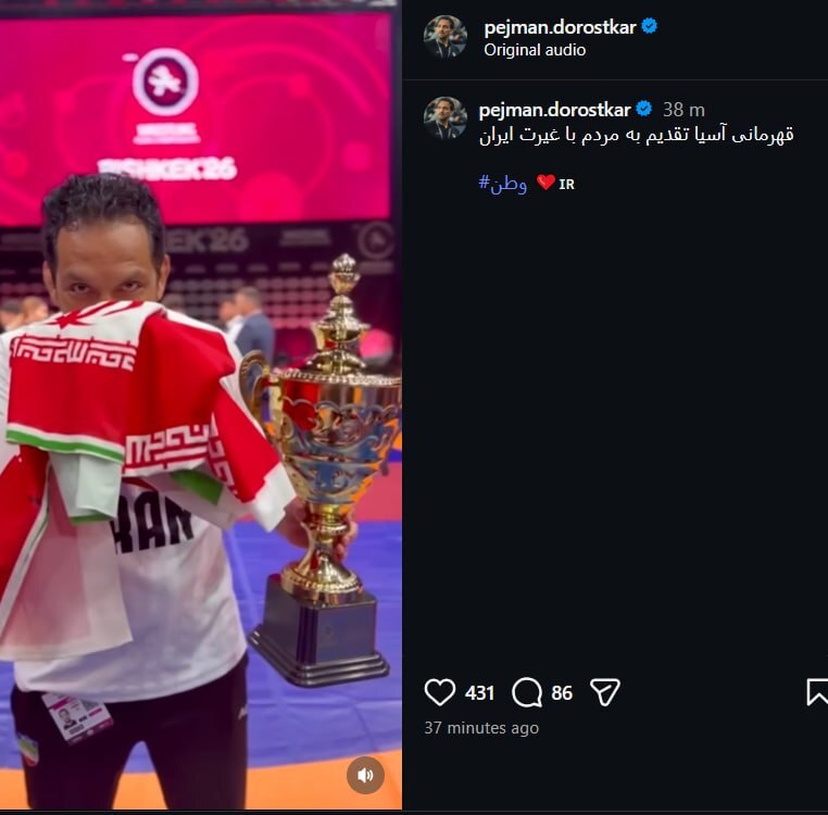 پست اینستاگرامی پژمان درستکار، سرمربی تیم ملی کشتی آزاد ایران پس از قهرمانی در آسیا
