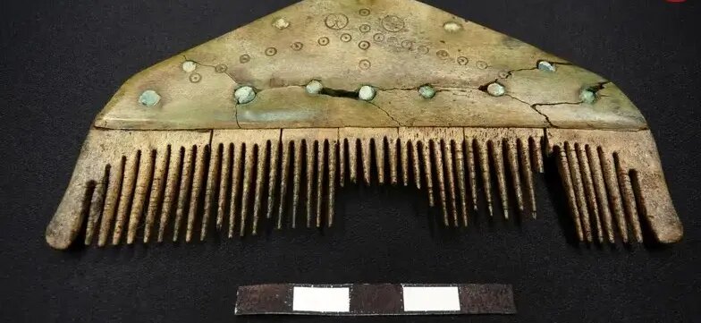 یکی از اشیای بسیار نادر این دوره، شانه‌ای تقریباً سالم و سه‌لایه از قرن چهارم تا پنجم میلادی است که با نقوش دایره‌ای و میخ‌های برنزی تزئین شده است. نمونه‌های مشابه معمولاً به‌دلیل رسم سوزاندن مردگان به‌صورت قطعات شکسته یافت می‌شوند، بنابراین این نمونه اهمیت ویژه‌ای دارد.