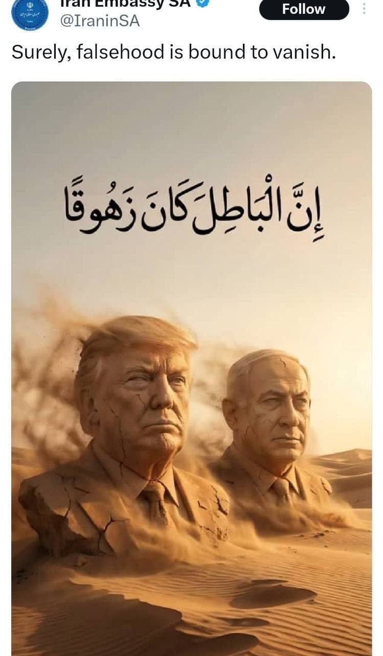 اکانت سفارت ایران در آفریقای جنوبی: یقیناً باطل نابود میشود
