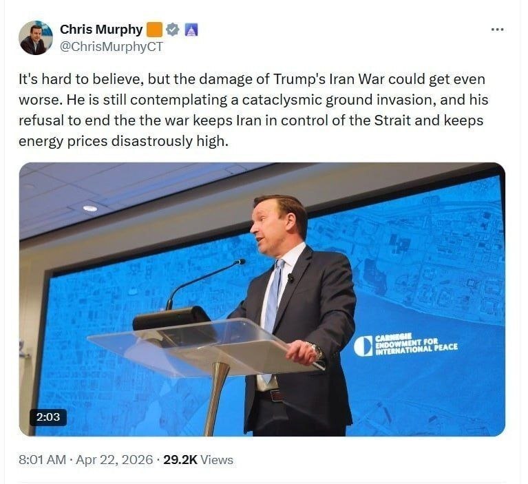 به گزارش تابناک؛ سناتور کریس مورفی نوشت: امتناع ترامپ از پایان دادن به جنگ، ایران را در کنترل تنگه هرمز پایدار و قیمت انرژی را به طرز فاجعه‌باری بالا نگه می‌دارد.
