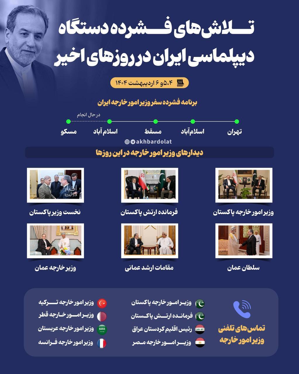 سفرها و دیدار و تماس های تلفنی عباس عراقچی، وزیر امور خارجه از جمله برنامه های فشرده وی در این روزها بوده که به خلاصه وار ملاحظه می کنید.