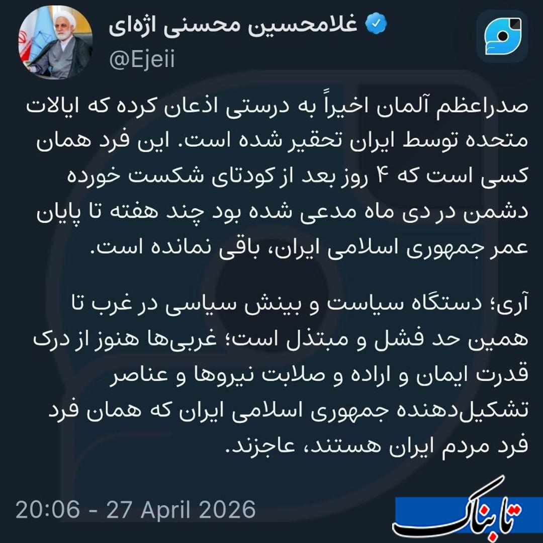 واکنش محسنی اژهای به اعتراف سنگین صدراعظم آلمان