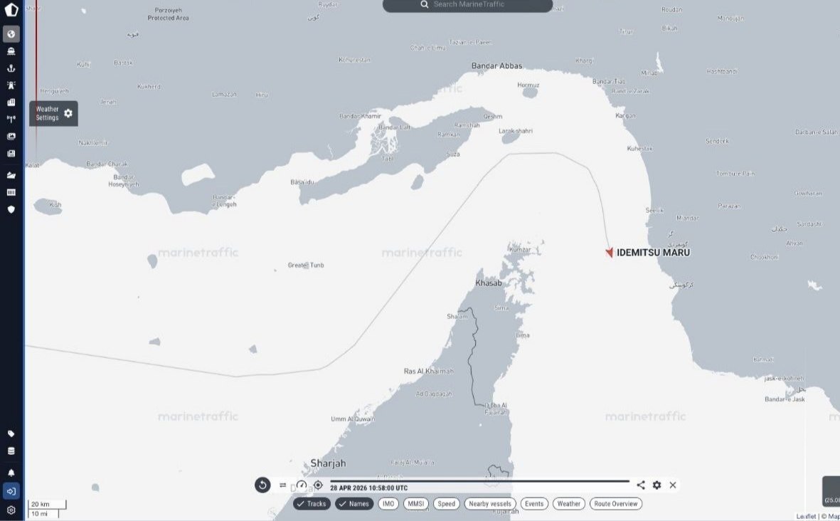 براساس دادههای مارین ترافیک، یک نفتکش VLCC متعلق به شرکت پالایشی ایدمیتسوی ژاپن با هماهنگی ایران از تنگه هرمز عبور کرده است. این کشتی که در ۱۷ آوریل از لنگرگاه راس تنوره حرکت کرده بود.