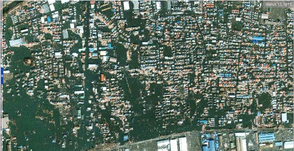 تصاویر ماهواره ای زیر گوشه ای فاجعه انسانی بوجود آمده از سونامی و زلزله است.