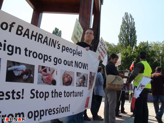 به گزارش خبرنگار «تابناک»، در این تجمع که به درخواست شماری از سازمان های حقوق بشری برگزار شده بود، تجمع کنندگان با در دست داشتن دست‌نوشته‌هایی، خواستار فشار مجامع بین‌المللی برای پایان دادن به حضور نامشروع نیروهای سعودی در بحرین و رسیدگی به وضعیت بغرنج مردم بحرین شدند.