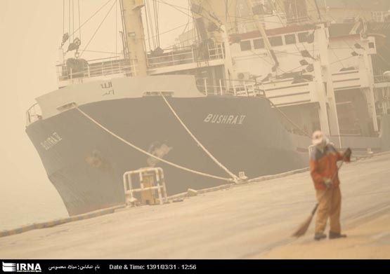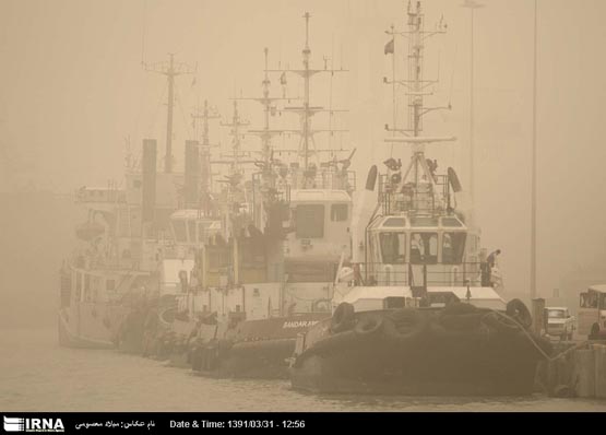 ریزگردها در بندر امام، کشتی ها را مجبور به پهلوگیری کردند.