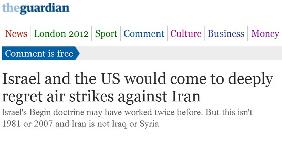 به این ترتیب، گاردین نتیجه میگیرد که بهتر است رژیم اسرائیل به جای درگیر کردن خود در یک منازعه خونین، از این اقدام صرف نظر کرده و اجازه دهد جامعه جهانی به تلاشهای خود از راههای دیگر در رابطه با برنامه هستهای ایران ادامه دهد.