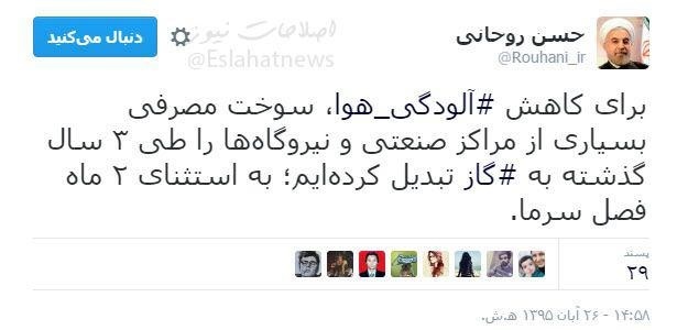 توییت روحانی در روزهای آلودگی هوا