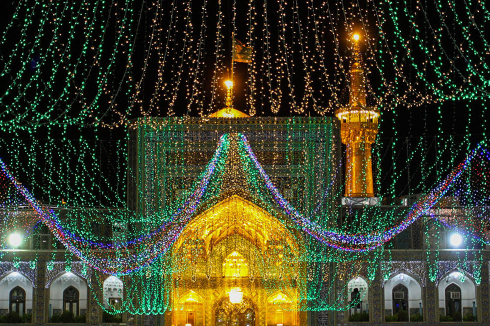 حرم مطهر رضوی غرق در نور و سرور میلاد است، خادمان با شیرینی به استقبال زائران می آیند، صدای نقاره با نوای صلوات زائران، قلب را جلا می دهد و جاری شدن اشک انگار اذن دخول می شود.