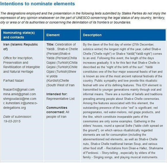 اظهارنظری متفاوت درباره پرونده «شب یلدا» در یونسکو