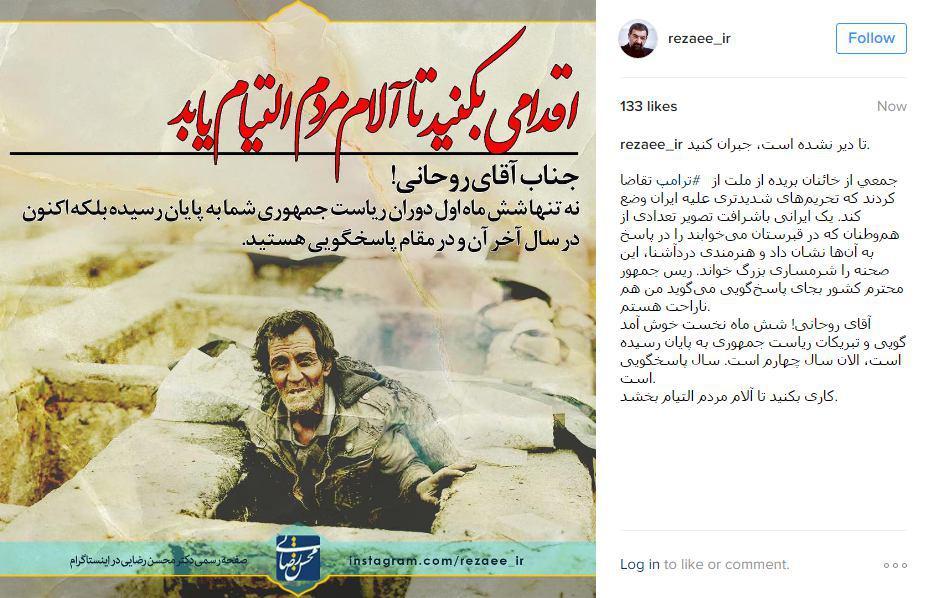 تذکر محسن رضایی به روحانی درباره بیخانمانها