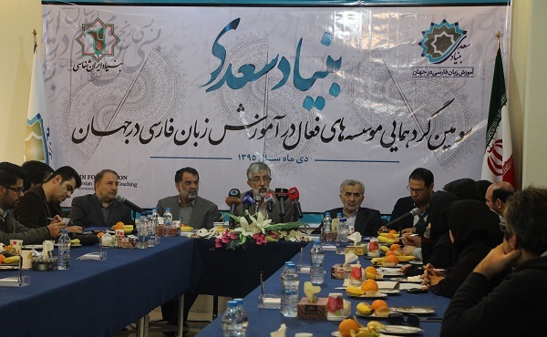 حداد عادل گفت: با تاسیس بنیاد سعدی و محور قرار گرفتن آن، حرکت آموزش زبان فارسی به سوی عملی و تخصصی شدن پیش می رود و زیرساخت های لازم با حوصله و دقت تهیه می شود و موسسات فعال در این حوزه نیز دلگرمتر شده اند.
