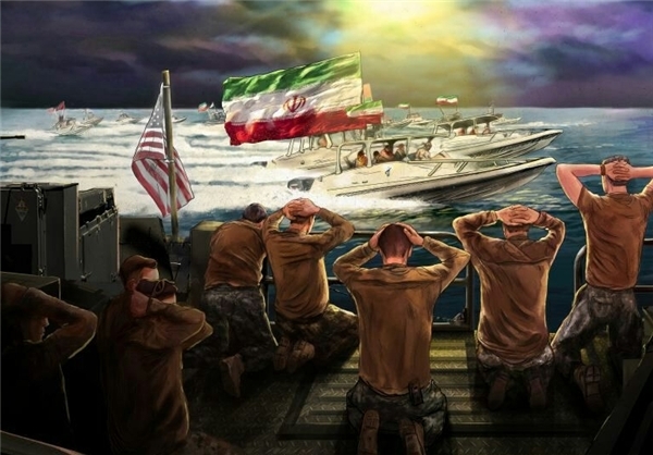 در آستانه سالروز بازداشت نظامیان امریکایی در جزیره فارسی خلیج فارس توسط نیروی دریایی سپاه پاسداران انقلاب اسلامی، تازه ترین دیوارنگاره میدان ولیعصر عجل الله فرجه الشریف صبح امروز 23 دی ماه اکران شد.