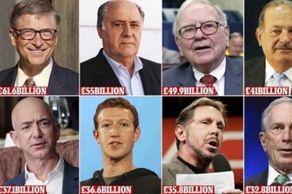 البته «امانکیو اورتگا»، «وارن بافت»، «کارلوس اسلیم هلو»، «لری الیسون» و «مایکل بلومبگ» در میان هشت ثروتمند برتر جهان دیده می شوند که مجموع دارایی این هشت نفر، بیش از ۳۴۰ میلیارد دلار برآورد شده است.