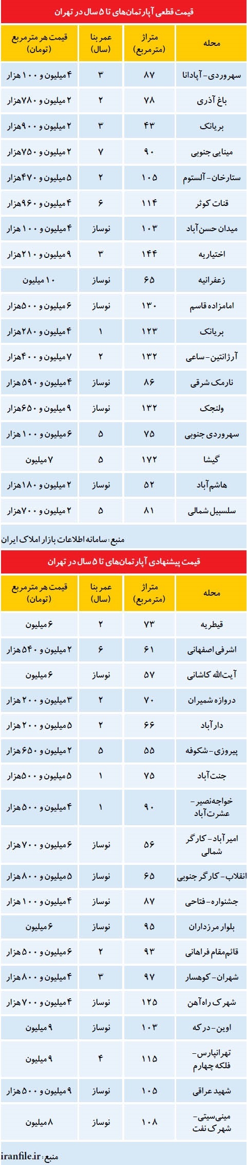 قیمت آپارتمانهای با عمر کمتر از ۵ سال در تهران