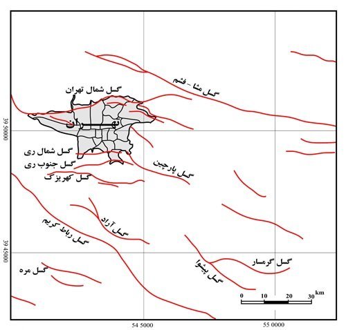 نقشه پراکندگی گسل‌های تهران