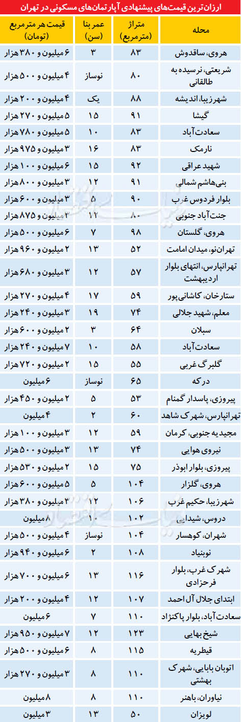 ارزانترین املاک در بازار مسکن پایتخت