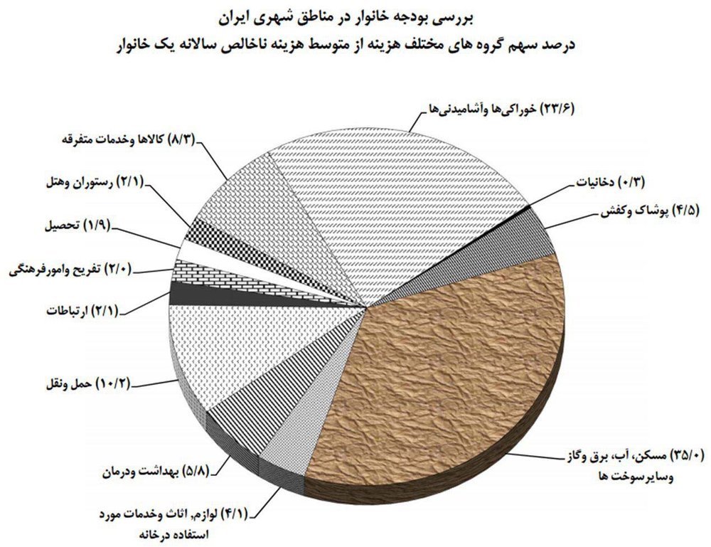 با این حال سهم هر یک از دوازده گروه هزینه‌ای در بودجه خانوار یکی از موضوعات مهم است که بر اساس نتایج بانک مرکزی از وضعیت بودجه خانوار، هزینه این دوازده گروه (مبنای تعیین معیشت کارگران) از متوسط هزینه سالانه خانوار مورد بررسی قرار گرفت که در بین آنها «مسکن و انواع سوخت‌ها» با سهم ۳۵ درصدی بیشترین هزینه سالانه یک خانوار کارگری را به خود اختصاص می‌دهد.
