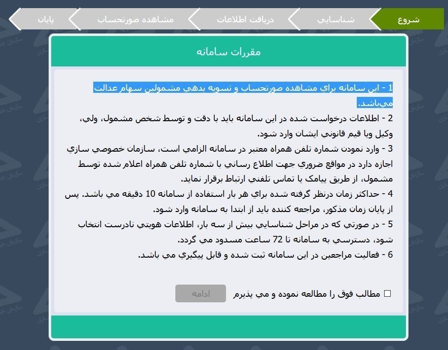 خیلی متشکرم ولی نمیدانم چطور از صورتحساب سهام عدالت خودم با خبر شؤم لطفا مرا راهنمایی بفرمایدد