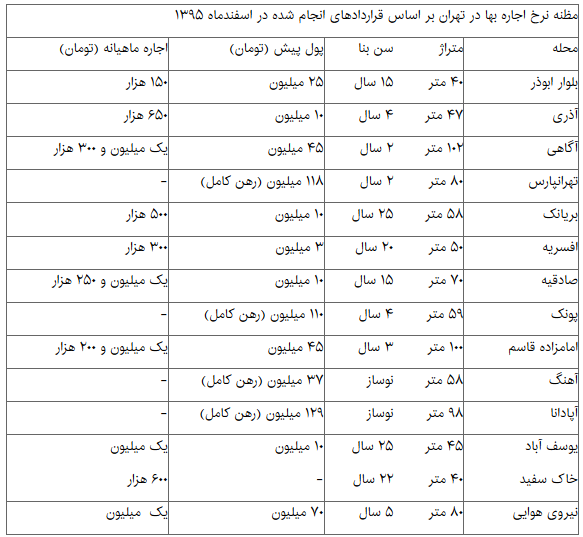 بازار اجاره پایتخت در آخرین ماه از سال ۱۳۹۵ روزهای آرامی را سپری میکند و بنا به گفته رییس اتحادیه املاک، نرخ افزایش اجاره بها در زمستان کمتر از ۸ درصد بوده است.