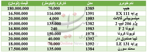 به گزارش میزان، برای خرید خودروهای دسته دوم باید بسته به مدل، کیفیت و میزان کارکرد باید ارقام متفاوتی را هزینه کرد.