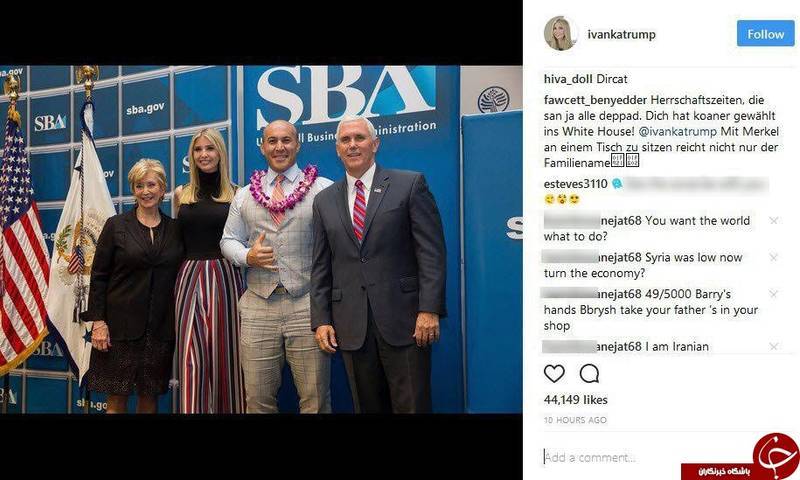 در این بین یکی از هموطنانمان کامنتی جالب را به زبان انگلیسی در زیر پست ایوانکا ترامپ گذاشته است بدین مظمون که: