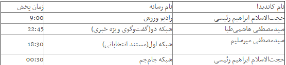 برنامه امروز کاندیداها در رسانه ملی