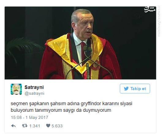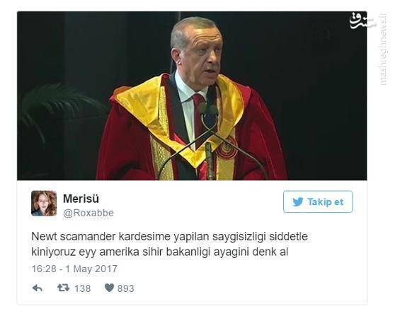 به گزارش مشرق، لباس اردوغان در مراسم سخنرانی دانشگاه ملی دروس اسلامی هندوستان به سوژه اصلی کاربران شبکه های اجتماعی تبدیل شد. بسیاری از کاربران، لباس اردوغان را همان لباس هری پارتر دانستند که توسط رئیس جمهور ترکیه برای سخنرانی به امانت گرفته شده بود.
