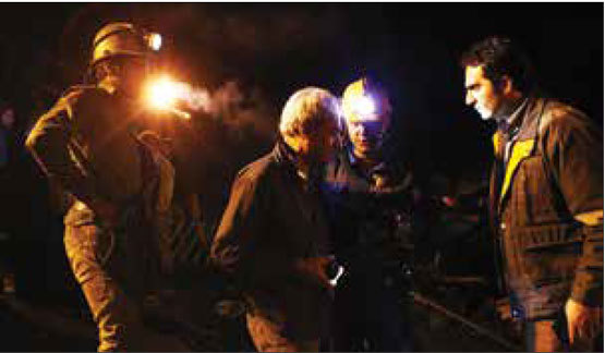 معدنچیها، آنهایی که از این حادثه تلخ جان به در بردهاند مقابل ورودی تونل ١٨٠٠ متری ایستادهاند به امید زنده بودن ١٤ همکار دیگرشان که انفجار و ریختن آوار آنها را محبوس کرده است. آرام و قرار ندارند، مینشینند روی زغال سنگها؛ دست به دعا بر میدارند شاید معجزهای شود.