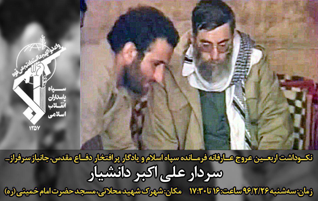 چهل روز از عروج عارفانه فرمانده سپاه اسلام و یادگار پر افتخار دفاع مقدس، جانباز سرفراز، سردار علی اکبر دانشیار گذشت.