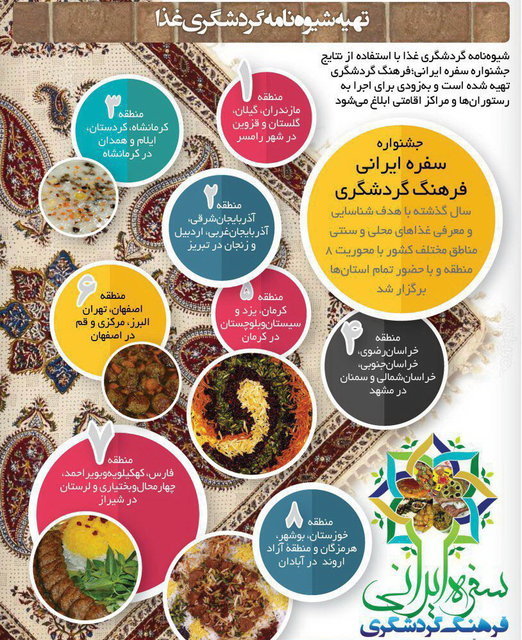 به گزارش ایسنا، جشنواره سفره ایرانی، فرهنگ گردشگری از سال گذشته در هشت منطقه کشور و در شهرهای رامسر، تبریز، کرمانشاه، مشهد، کرمان، اصفهان، شیراز و آبادان و با هدف شناسایی و معرفی ظرفیت‌های خوراک محلی و سنتی ایرانی، توسعه گردشگری غذا و البته تغییر منوی خوراک در رستوران‌های کشور برگزار شد که هرچند با وجود نقدهایی در باب ضرورت نداشتن برگزاری چنین رویدادی که بیشتر ماهیت سرگرمی محلی دارد و هزینه‌بر است و تکرار اتفاقات گذشته بدون داشتن برآیند موثر بوده، اما در نهایت سازمان میراث فرهنگی و گردشگری اعلام کرد که با نتیجه همین جشنواره‌ها، شیوه‌نامه گردشگری غذا تهیه شده که به زودی هم ابلاغ خواهد شد.
