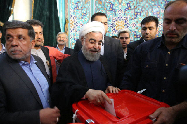 حجت الاسلام و المسلمین حسن روحانی با حضور در حسینیه ارشاد رای خود را به صندوق انداخت.