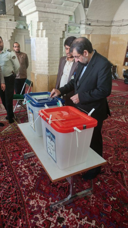 دبیر مجمع تشخیص مصلحت نظام لحظاتی پیش رأی خود را در صندوق انداخت.