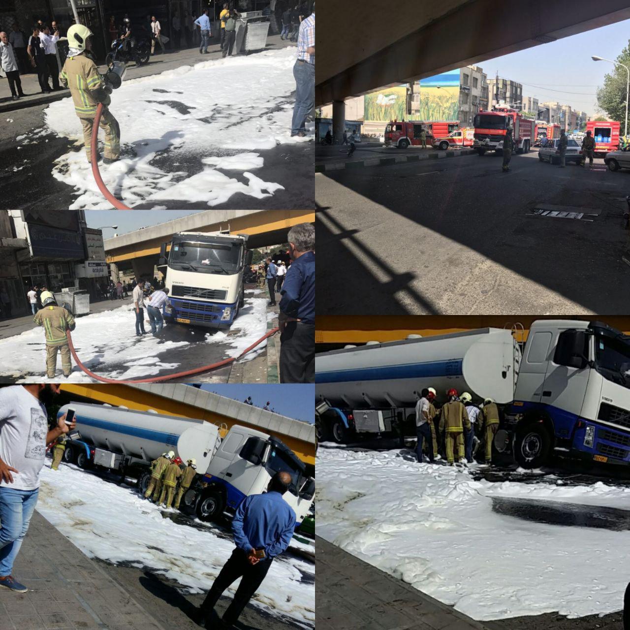 واژگونی تانکر حمل بنزین زیر پل ستارخان