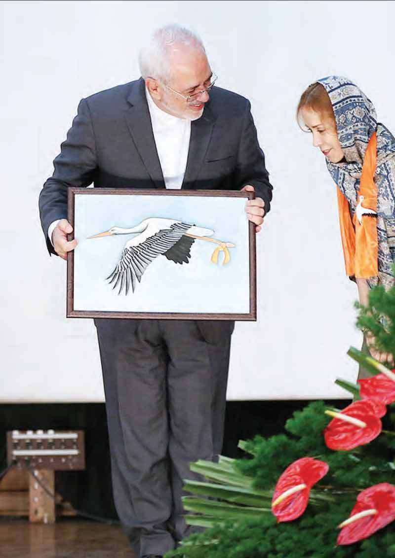 محمدجواد ظریف، وزیر امورخارجه، یکی ازسخنرانها بود. او وقتی پشت تریبون رفت، حرفهایش رنگ و بوی سیاسی گرفت: «اگر امروز ما با شرایط بهتری روبهرو هستیم، به برکت وجود شما مردم است. اگر امروز برای تهیه دارو نیاز نیست که از انواع روشهای غیرمعمول و غیرانسانی استفاده کنیم و درجهان سر بلندیم و بیماران ما دربیمارستانها مشکل اولیه پزشکی را ندارند، به خاطر کسانی که مذاکره کردند، نیست، بلکه به خاطر شما مردم هوشمند است.» او اینگونه صحبتهایش را شروع کرد و ادامه داد: «به خاطر کسانی است که در سال ٩٢ با جمعیت فراوان به پای صندوقهای رأی رفتند و به دنیا نشان دادند که باید با این مردم بزرگ با زبان احترام صحبت کنند و باید تحریم و تحقیر را کنار بگذارند و به پای میز مذاکره بیایند. به خاطر شماست که روزجمعه پای صندوقهای رأی آمدید و سرنوشت خود را انتخاب کردید و یکبار دیگر به دنیا نشان دادید که هیچکس هیچگاه نمیتواند یک ایرانی را تهدید کند.» او حرفهای دیگری هم زد: «نشان دادید این ملت ملتی نیست که امنیت، استقلال، پیشرفت، توسعه علم و فناوری را از دیگران بخواهد. ملتی نیستید که مثل همسایگان ما با یک چشمک ازطرف غربیها و آمریکاییها بلرزند و با چشمکی دیگر خوشحال شوند و برقصند.»