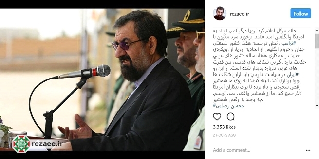 در ادامه باید به مطلب امروز محسن رضایی در صفحه اینستاگرامش در ارتباط با شکاف میان اروپا و آمریکا اشاره کرد.