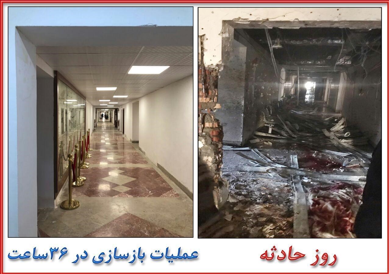 عکسی از روند بازسازی مجلس منتشر شده که نشان می‌دهد این عملیات بازسازی در کمتر از ۳۶ ساعت انجام شده است.