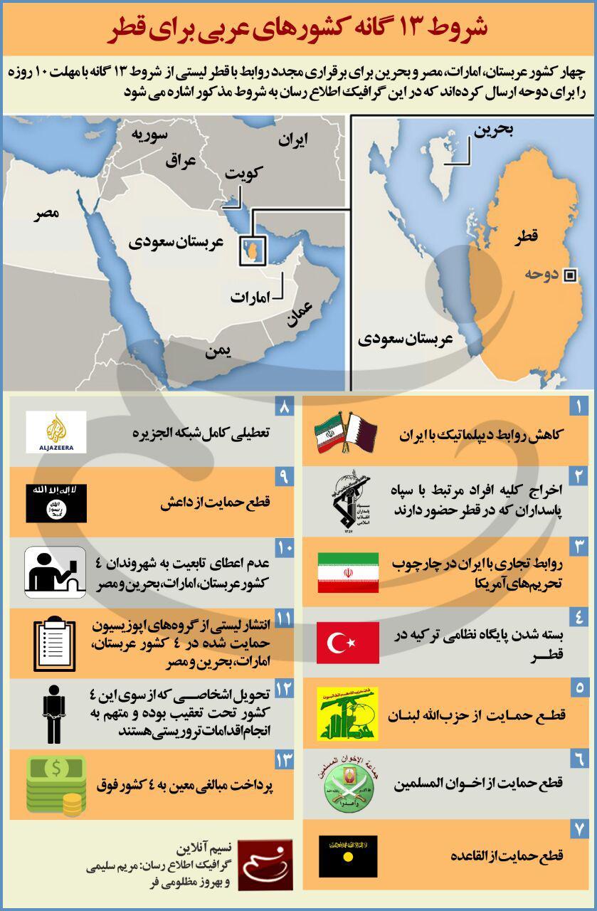 اینفوگرافیک: شروط ۱۳گانه کشورهای عربی برای قطر