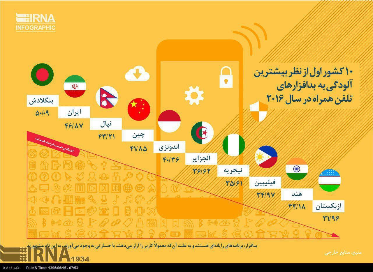 بیشترین آلودگی به بدافزارهای موبایل در کشورها