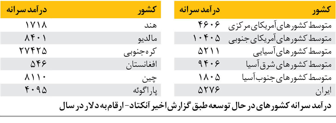 مقایسه درآمد سرانه ایران با کشورهای آسیایی